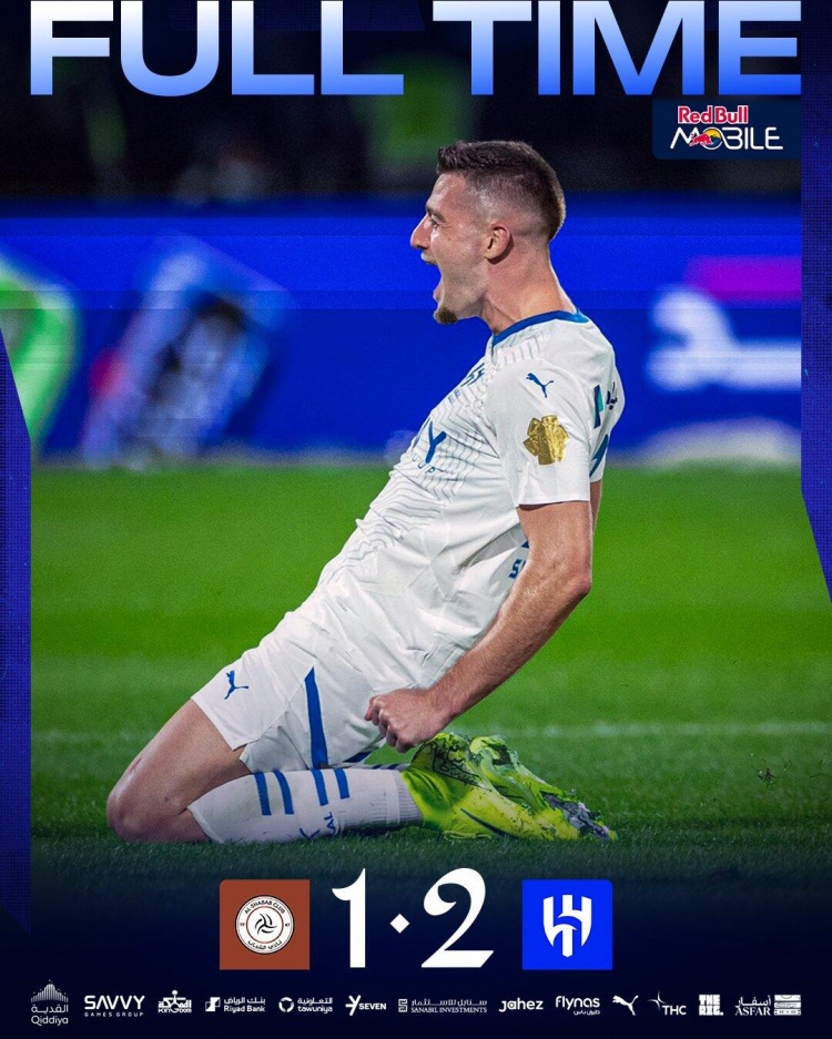 12月01日讯 沙特联最新一轮,利雅得新月2-1战胜利雅得青年人,米林科维奇完成双响。