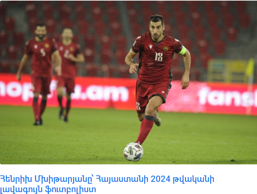 雷速体育12月28日讯 亚美尼亚足协官方宣布,国米中场姆希塔良当选2024亚美尼亚足球先生。