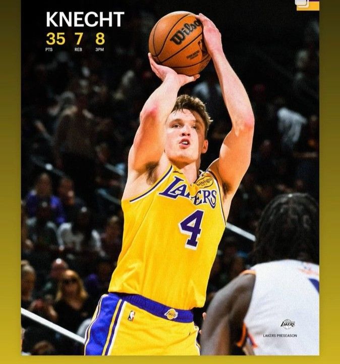 北京时间10月18日讯,在今天结束的一场季前赛中,太阳以122-128不敌湖人。湖人17号新秀克内克特出场32分钟,18投10中,其中三分球13投8中,罚球8罚7中,得到35分7篮板1助攻2抢断2盖帽。
